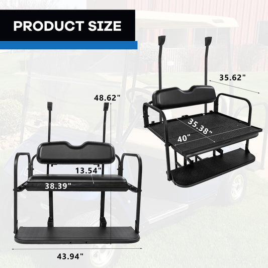 VPAHub Club Car Precedent/Tempo Flip Folding Black Seat Kit, Compatible with 2004-Up Gas or Electric Models, Black Cushions, Metal footrest